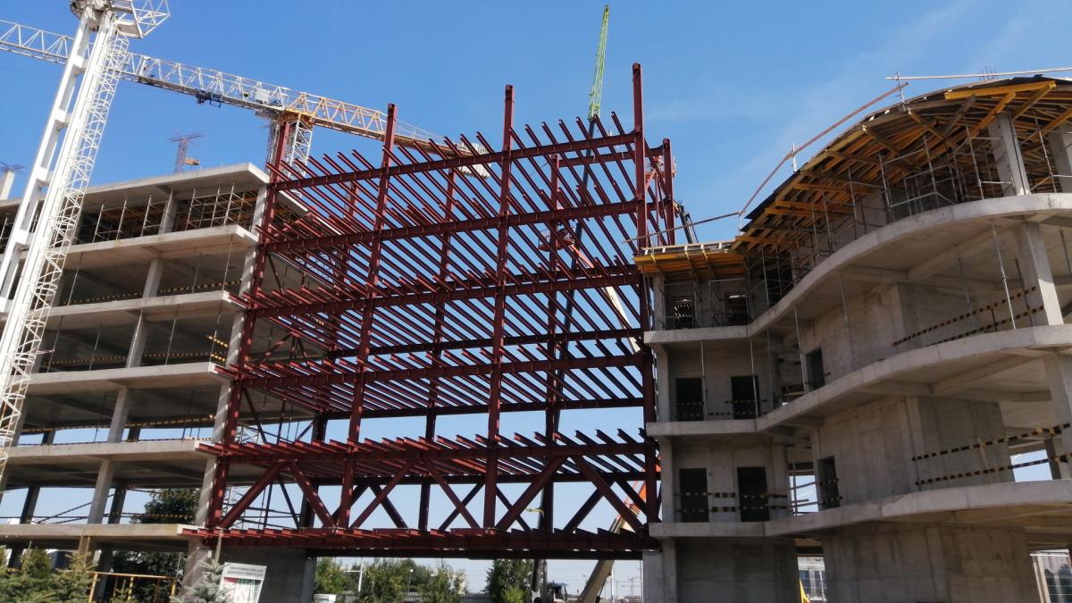 Выполнены изготовление и монтаж металлоконструкций МФК по пр-ту Победителей.