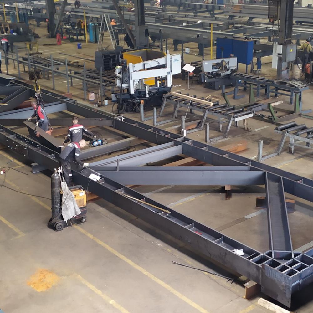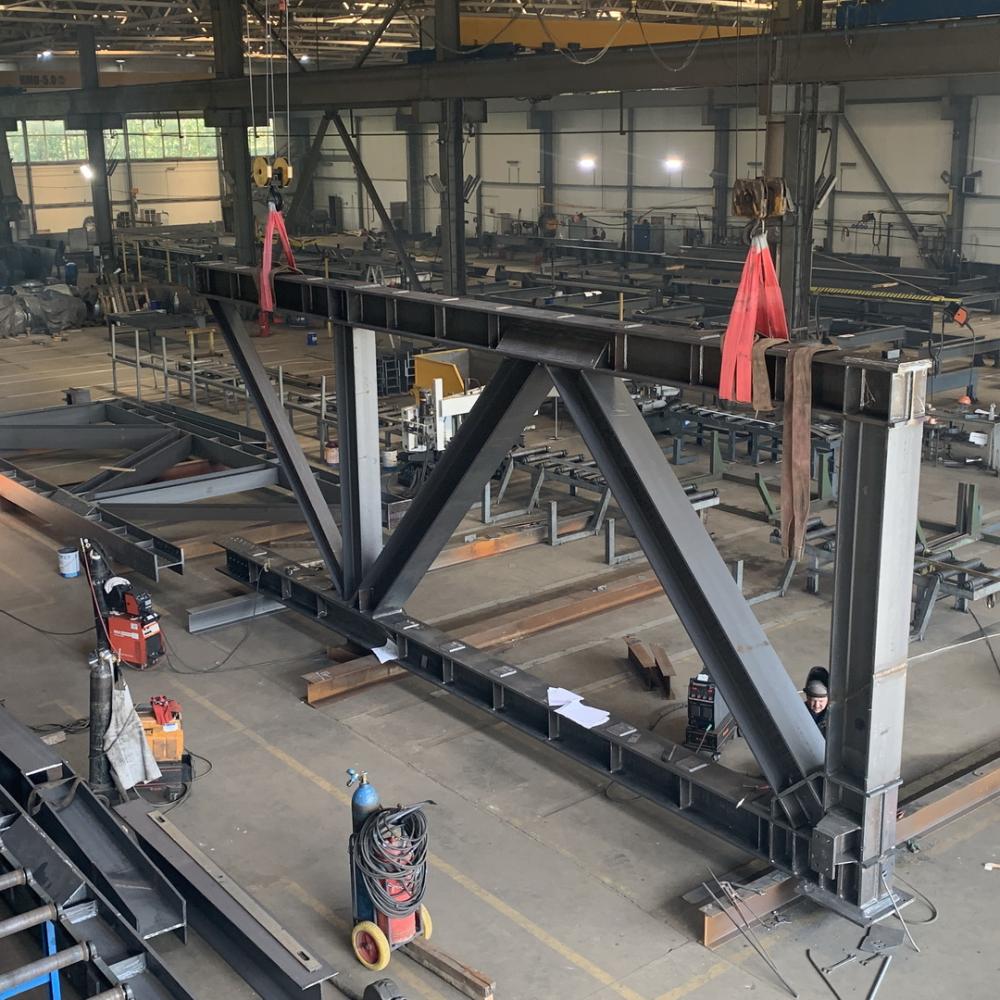 Масса одной фермы пролетом 24м составляет 25 тонн, таких ферм 2 шт и на них опираются 6 последующих этажей.