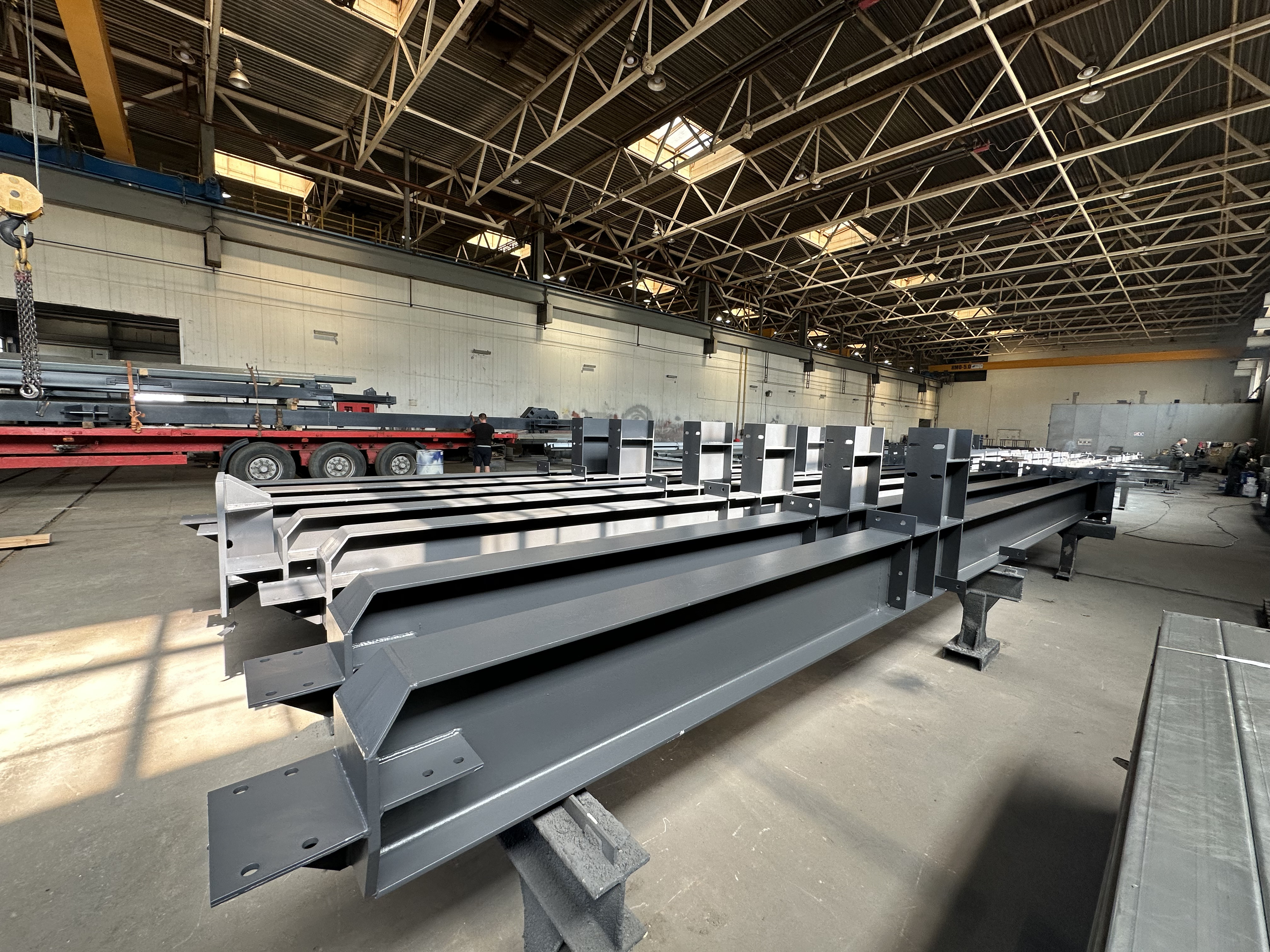 Дробеструйная камера, позволяет очищать уже готовые металлоконструкции непосредственно перед нанесением лакокрасочных материалов. Готовые металлоконструкции качественно упаковываются между собой, что позволяет не допустить повреждений конструкций во время их погрузки, перевозки и разгрузки на объекте.